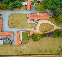 Set within approximately 5.18 acres, the grounds include stunning formal gardens, paddocks, terraces, and ample parking. The front approach makes a striking first impression, with a picturesque lawn and fountain leading to the property. A large rear terrace provides the perfect space for entertaining, while the extensive outbuildings include carports, garages, storage areas, a workshop, a tractor store, and kennels with a dog run. A separate access point leads to additional buildings, enhancing the property's versatility.
