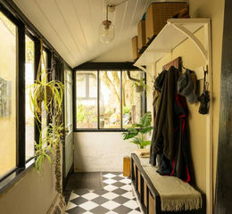 A sweeping driveway provides parking for up to four cars, with additional parking available adjacent to the barn. Well-trodden paths wind their way throughout the corner plot, leading to wild gardens and sunlit vegetable patches, setting the tone for what lies ahead: A masterclass in timeless design and style.