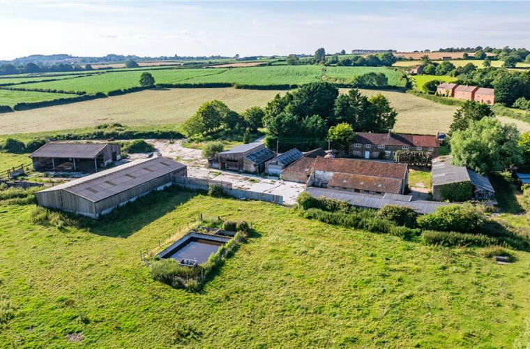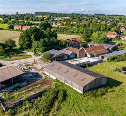 A rural/village-edge development site including a farmhouse for renovation, together with a range of traditional and modern buildings for conversion to seven dwellings together with adjoining pasture paddocks.