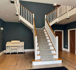 The house is deceptively spacious. Spread over three storeys, the property opens to a large reception hall which - featuring a walnut split staircase – has 2.7-metre-high panelled walls; a large galleried landing with central chandelier; floor to ceiling windows, and a set of walnut double doors leading off to the open-plan kitchen, dining and living space. The kitchen is fitted with a good range of bespoke hand-painted wooden units with walnut interior alongside granite and solid walnut worksurfaces plus several high-end appliances. These include an 85-bottle dual climate Liebherr wine fridge; a slide and hide NEFF oven bank and coffee machine; a NEFF drinks fridge, plus a NEFF dishwasher and NEFF electric hob. Further to the kitchen space, there are Bose ceiling speakers and a DRU tunnel gas fire. Triple-aspect bi-fold doors provide access to the rear garden creating an open entertaining space, and there is also a set of French doors which enjoy views of the paddocks and fields...
