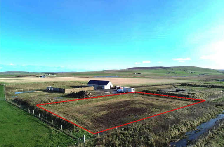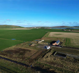 Enjoys sweeping panoramic views across farmland with the Hoy Hills in the distance.