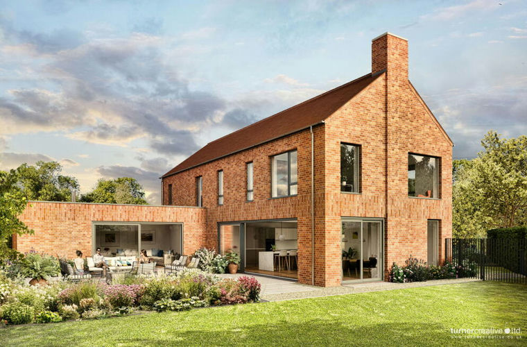 The site offers an exciting opportunity to create a contemporary home of 250 sqm (2,700 sq. ft). The design offers red brick elevations and extensive glazing to allow plenty of light to flood into the accommodation. The property will provide a high degree of insulation and can be built with sustainability at its core. The accommodation will consist an entrance hall with stairs to the first floor, study (or ground floor bedroom), cloakroom, shower room, along with a fabulous open plan living room/dining room/kitchen with glazing on three sides and large sliding doors to the terrace. In addition will be a separate sitting room with roof lights and sliding doors to the terrace. On the first floor will be a principal bedroom with en-suite, along with three further bedrooms, one with an en-suite and family bathroom.