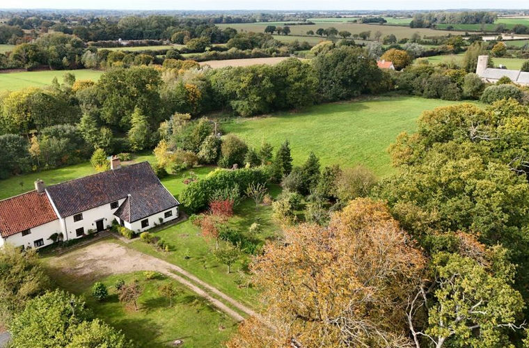 Once part of a working farm, Rushall Hall now stands independently, surrounded on three sides by open countryside. While the farmland has been sold off, the neighbouring outbuildings remain in use for storage. The setting offers both seclusion and accessibility, with the North Suffolk coast, the Brecks, and the Norfolk Broads all within easy reach.