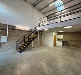 A rare opportunity to purchase or lease a brand new light industrial / warehouse unit of steel portal frame with low level brick fascia’s and micro-rib cladding systems. Unit 23 is located towards the rear of the estate in a small terrace of 3 similar units and provides an occupier with ground floor warehouse accommodation with first floor mezzanine office / storage space. The unit benefits from concrete flooring, 3 phase electricity, LED lighting, electronic roller shutter door and separate pedestrian door. Telecoms ducting is also provided.