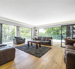 This unique, detached freehold residence is situated on an unusually large plot /extending/ to approximately one acre. Completely transformed by the current owners, it has become an outstanding family home. With over 3450 SqF (320.4 sqm) of internal floor space, the bespoke design spans four levels, featuring five bedrooms, five boutique bathrooms, and impressive open plan living and dining areas perfect for entertaining. The sophisticated designer kitchen is enhanced by wrap-around bi-folding doors that reveal stunning tree-top views of the landscaped gardens.