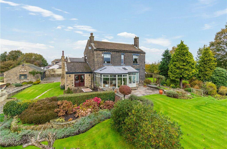 This attractive family home has been lovingly extended and upgraded by the current owners over the last 45 years to maximise the delightful views, setting and stunning, extensive gardens. The stone built property comprises, to the ground floor, a large entrance porch leading to the entrance hall with useful utility room and wc. A generous inner kitchen, with a range of base and wall units and large Rangemaster cooker, leads through to a stunning dining kitchen being the heart of the home with an island and ample worktop space, dining and sitting areas with stunning views and this space is being flooded with natural light having windows to three elevations, Velux roof lights and double doors to the garden. Also to the ground floor are three spacious reception rooms and, to the rear of the property, a spacious conservatory offering delightful views over the garden, paddock and countryside beyond. To the first floor are three double bedrooms, a small single bedroom and a large house bathroom. A large, detached barn has been cleverly converted to offer further living space with a spacious lounge and dining kitchen, two double bedrooms, snug and bathroom. This attractive property is ideal for extended family / guest accommodation or, with the appropriate licence and consents, would make a lovely AirBnB. The stunning gardens encompass sweeping lawns with mature planted beds and landscaping, beautiful pond with an outbuilding and patio area creating a tranquil setting. A hedge enclosed vegetable plot with ample beds to grow your own fruit and veg with glass greenhouse, and a large patio area directly to the rear of the house is ideal for outside entertaining and making the most of the fabulous views. For those who enjoy equestrian pursuits, the property comes with the rare benefit of a paddock and stable block with stabling for a number of horses. And a large Hen run also to house many hens. There is also a triple garage with electric doors and block paved, gated cobbled courtyard driveway with parking for a large number of cars. This is a rare opportunity to have two dwellings on the same plot and have the potential to run a business or have family live close by. Please call our office to discuss things further.