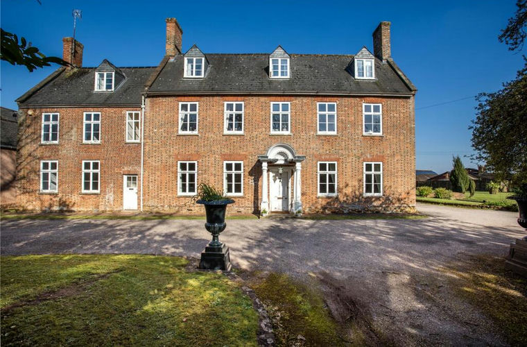 This particularly handsome period house dating back to 1725, was fashioned in the Queen Anne style and is certainly worthy of its Grade II listing. The house is built of mellow brick with the front elevation decorated by a regular pattern of purple bricks and boasts an impressive portico supported by Doric columns. The property has undergone extensive works of improvement and renovation over the years by the present owner but still requires further works and refinement. The panelled front door set within the entrance portico leads into the dining hall with a handsome fireplace with recessed alcoves to either side. There is a deep cornice, ceiling plaster work and two windows with window seats overlooking the front garden. An elegant staircase leads up to the first floor and two doors connect with the adjoining drawing room, which has an impressive inglenook fireplace with massive beam, wood burning stove and windows looking again, onto the front garden.
