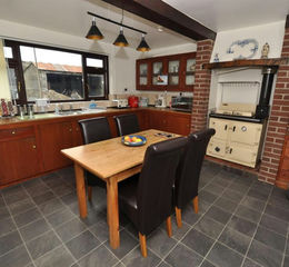 Kitchen/Dining Room - 4.42m x 3.90m (14'6" x 12'9" ) - Fitted base and eye level units with wood effect worksurface over the base units incorporating a stainless-steel sink. Electric cooker point uPVC double glazed window to rear. Feature fireplace with a “Rayburn Royal” solid fuel stove. Space for fridge freezer, again part exposed part beam ceiling. Radiator. Door through to Lounge