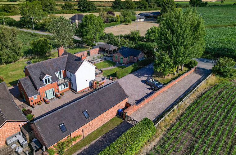 The main residence sits proudly behind secure electric gates opening to the large gravelled driveway providing ample off-road parking for several vehicles. Further gates lead to a block paved courtyard style garden with EV charging point and access into Home Barn. A pathway leads to the front garden where there is a beautifully landscaped area having a lawn, an extensive paved patio ideal for summer entertaining, oak framed garden gazebo and access into 'Game Cottage'. There is a brick wall with gate leading to the large lawned garden with open countryside views over the neighbouring field, a fire pit, garden shed, wood store, and a further large block paved patio seating area.