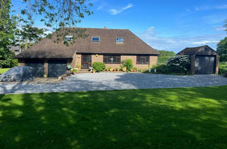 Space, privacy and so much potential! House or development site. This 5 bed detached home is tucked away on its own extensive plot measuring approximately 1 acre with wonderful views across the fields to the rear. Internally the property is currently a blank canvas with the opportunity of making this generous accommodation your own. Featuring generous accommodation including 5 bedrooms, 2 reception rooms, kitchen, boot room, utility room, shower room, bathroom and an ensuite. Integral double garage with further single and workshop/car barn for additional storage. Alternatively, planning approved for redevelopment to replace with 3 detached homes (ref. 20/1718/FH). For viewings or more information, please contact our office.