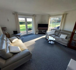 Light and airy room with a wonderful outlook on to the surrounding gardens with views across the neighbouring countryside. Featuring window to side elevation, two double glazed French doors to patio area externally. carpet, radiator and ceiling & wall lights as fitted.