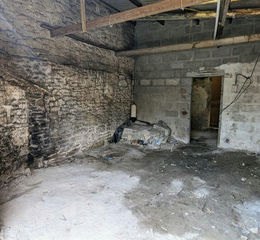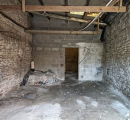 Double timber doors lead in. Open to roofing sheets and timbers. Doorway leads through to: