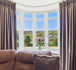 24' in to bay by 11'6 narrowing to 10'6 Feature open fireplace with slate hearth and wood burning stove inset, two radiators, bay window to front, windows to side and rear with views to open countryside and woodland.