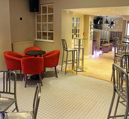 Located at ground floor is an OPEN PLAN BAR AREA which has a part wood sprung and part contemporary steel floor. There is modern seating throughout including leather bound, shaped, ribbed fixed seating providing curves and straight runs, together with loose, brushed steel effect chairs and high chairs to assorted low and poseur tables. BAR SERVERY which has mirrored panel frontage, mirrored display back fitting, and granite effect countertop. The room can cater for approximately 60 customers seated.