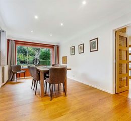 Dining Room, having a magnificent, uPVC double glazed picture window to the rear elevation providing fabulous views over the large rear Garden. Additional uPVC double glazed window to the side. Inset spotlights to the ceiling. wood flooring. Door through to the Kitchen.