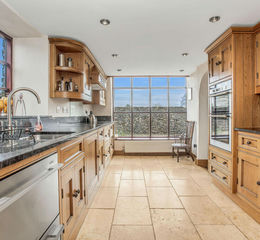 Brimming with natural light, this impressive, bespoke oak kitchen boasts underfloor heating below the stone flagged floor and an abundance of original base and wall cabinetry to also include display units and was in fact so unique that it was featured in the manufacturers marketing brochure! There are dark, natural granite work surfaces along with integrated appliances to include a dishwasher, waist height oven and grill, fridge, a ceramic hob and extractor hood above. There are views through the large picture window to one end out to Farleton Knott beyond with room for a modest table here to sit to enjoy the views in peace and quiet.