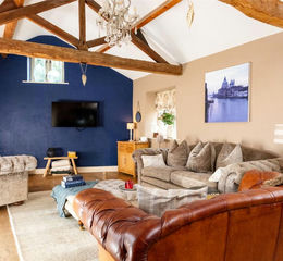 A stone built four bedroom barn conversion with an en suite bathroom, off street parking for four cars, and a 0.5 acres garden, in a rural location overlooking fields in the village of Sherington. The accommodation has underfloor heating throughout the ground floor and includes a triple aspect sitting room with a corner log burner, a vaulted ceiling with timber beams, and two sets of double doors to the front and rear. Also on the ground floor is an open plan kitchen/breakfast room leading to a dining area with an understairs storage cupboard, a family room which was converted from the former garage, a cloakroom, and an entrance hall with a feature exposed stone wall and stairs to the first floor.