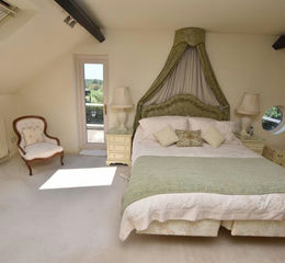 In the main house, there are three double bedrooms on the first floor, including the master with a large balcony and en-suite bathroom with corner bath and a separate large shower enclosure. Another fitted bathroom serves bedrooms two and three.