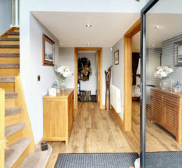 The layout is both quirky and characterful, offering three spacious double bedrooms, a well-appointed bathroom, and an additional shower room, ensuring ample space and comfort for family living. Each room is thoughtfully designed to combine functionality with style. Velux windows and shades, operated by convenient electric pads, add a touch of contemporary convenience to the rustic ambiance, flooding the spaces with natural light and providing easy control over the environment.
