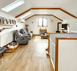 At the heart of the barn, warmth and style converge. The open-plan living areas are perfect for relaxation and entertainment, featuring a harmonious mix of original features and modern finishes. The contemporary kitchen is equipped with top-of-the-line appliances and ample workspace, catering to all your culinary needs and making it a focal point for family gatherings and entertaining guests.