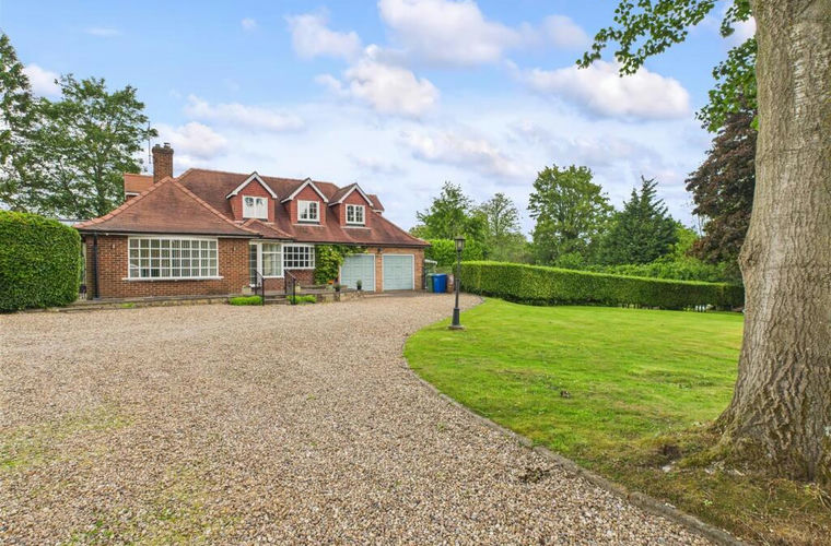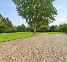 Outside - The property is set within approximately 1 acre of beautifully manicured grounds, accessed through automated gates that open onto a sweeping driveway leading to the house, which is situated toward the rear of the plot. Mature gardens surround all four sides of the property, including an extensive front lawn bordered by established trees and hedging. To one side, a secluded garden can be viewed from the conservatory, while the opposite side features a private allotment area complete with a greenhouse and vegetable planting cages.