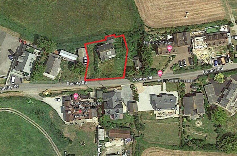 The site currently accommodates an existing dwelling, approved for demolition and redevelopment, with all matters reserved under planning application PA25/00936. Cornwall Council has granted outline permission for a new dwelling, subject to standard planning conditions including contamination assessments and ecological protection measures.