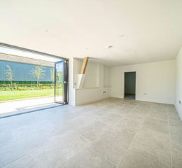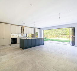 The shaker style kitchen has a central island, with integral Siemens appliances and hot water tap along with Silestone/Ceaserstone worktops. The open plan design caters for plenty of additional space for dining also has an additional set of bi-folding doors leading out to the garden which enjoys countryside views.