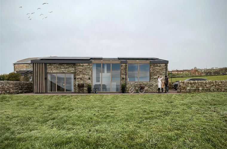 This is a rare opportunity to acquire an old barn with full approval in place for conversion into a striking contemporary home in one of West Cornwall’s most sought-after coastal settings. The scheme offers the chance to take a project from start to finish, creating a bespoke property shapes entirely by the purchasers own vision. The approved design provides a four-bedroom barn conversion, with each bedroom enjoying its own en-suite bathroom. The heart of the home is a generous open-plan kitchen, living, and dining space, designed to maximise light, volume and flexibility for modern living while respecting the original form of the building. The proposed exterior combines traditional Cornish materials with refined contemporary detailing. Local granite stone ground the building in its setting, while elevations incorporating locally sourced vertical oak timber fins to introduce warmth and texture. Aluminum coastal-grade windows and doors, finished in graphite black , add a (truncated)