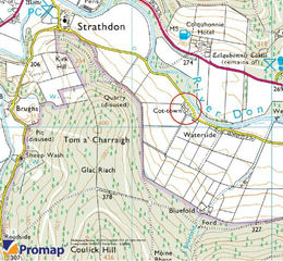 From Aberdeen take the A944 Alford road and continue a further 6 miles to Mossat. At Mossat turn left on to the A97 through Glenkindie, continue on past Glenbuchat and onto the bridge over the River Don. After crossing the bridge over the River Don continue straight ahead where the A97 turns south to Tarland. Approximately one mile beyond this junction turn left where signed "Waterside". Proceed a further mile and Cottown steading will soon be recognised in an elevated position on the left hand side of the road.