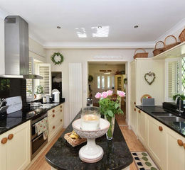 Kitchen - 3.71m x 3.48m (12'2 x 11'5) - Central island, hand painted shaker style units, Granite worktops, Neff oven, hob, dishwasher, fridge freezer, space for washing machine, Karndean flooring, column radiator, plantation shutters.