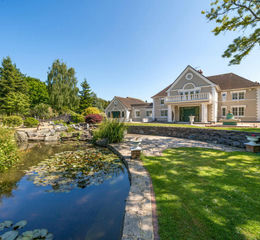 Set behind two sets of electronically controlled gates, this remarkable country residence spans approximately 13,000 sq ft and sits within 6 acres of meticulously landscaped grounds. A true entertainer’s paradise, the estate also includes two additional detached dwellings: a charming one-bedroom bungalow and a separate three-bedroom bungalow—perfect for long-term guests, extended family, or staff accommodation.