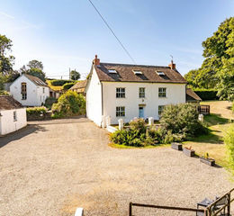 The property is approached from the adjoining country road into a large gravelled forecourt with lime washed white walls and raised garden areas laid to lawn leading through to a large parking forecourt for space for 6+ vehicles to park.