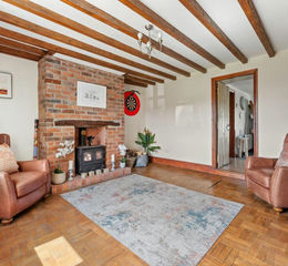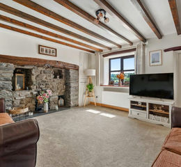 • A welcoming entrance vestibule leads into a characterful living room, highlighted by a striking exposed stone inglenook fireplace with a slate hearth, an inviting focal point for cosy evenings.