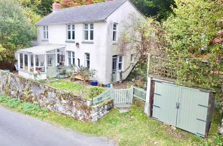 The property is approached via a pedestrian gate from the roadside to the small lawned front garden with herbaceous and flowering beds as well as a raised pond. A small garage provides useful storage. Steps ascend to a lawned and paved side garden with a seating area over the garage. A garden shed provides further storage. From the stone wall edged lawn, paths wind up onto the wooded copse to the rear with chicken coop and timber shed. Beyond the house to the side is a brick and timber wood store, oil storage tank and another shed.