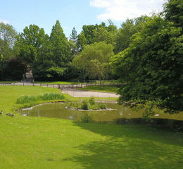 Area of Woodland Gardens Mature trees and shrubbery, screened by hedging.
