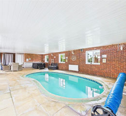 Pool Room - With slabbed flooring, a hot tub, swimming pool, uPVC cladded ceiling, double opening ‘French’ entrance doors and two sets of sliding patio doors.
