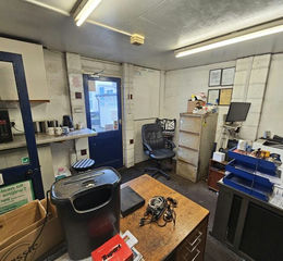 The commercial part of the premises was a former MOT test station which is currently owner occupied. and consists of a 3 bay workshop, office, storage units and customer waiting room.