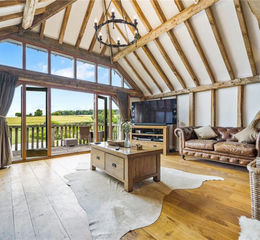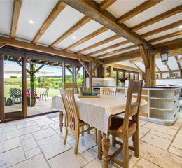 Upon arrival, you are welcomed through the magnificent former cart entrance, leading into a grand vaulted reception and dining hall—a true testament to the property's charm. The allure of this residence lies in its impressive oak timber frame barn architecture, boasting a rich character accentuated by exposed beams, vaulted ceilings, and exquisite oak joinery, creating a spacious and inviting accommodation. Offering both versatility and generous proportions, this property comprises an open-plan kitchen and dining area with picturesque views of the rear garden, complemented by a utility room for added convenience.