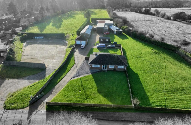 Approached via a large private driveway, the property enjoys extensive infrastructure including multiple workshops, sheds and garages, making it ideally suited for those seeking home business potential, equestrian or hobby use, or multi-functional living. To the rear and side, expansive paddocks provide open views and a true sense of space, while a substantial area of hard standing—historically used as a Spitfire pen—adds a unique and characterful feature, offering further practical or development appeal.