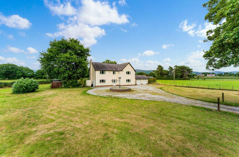 The landscaped gardens wrap around the property, offering generous lawns to both the front and rear, with a patio terrace running the length of the rear aspect of the property itself, providing a tranquil and private setting ideal for family life and outdoor entertaining, with remarkable views towards Moel Famau available from the rear garden.