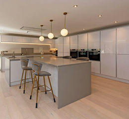 • High-end Bosch appliances including induction hob with integrated extractor, two ovens, microwave oven, and integrated fridge, freezer, and dishwasher