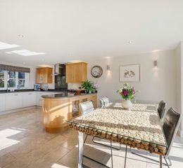 The ground floor is designed for both practicality and flexibility. A useful double-sized cloak cupboard, study and a guest WC sit just off the hall, while a versatile family room could serve equally well as a dining room or snug, enjoying garden views through large picture windows. The principal living space is the family dining kitchen, which spans the depth of the house and is bathed in natural light from both front and rear elevations. Beautifully fitted with a handcrafted David Lisle kitchen, quartz work surfaces and high-end integrated appliances, it offers an ideal setting for everyday living and entertaining. An adjoining dining space opens through doors onto the garden, blending indoor and outdoor living seamlessly. Completing this level is a well-appointed utility room that adds valuable practicality.