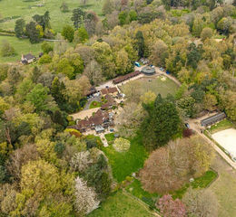 There is ample space for further extension, subject to consents. Enjoying both natural privacy and stunning rural views, the house is set in 5 acres of grounds along with an additional 39 acres of grassed paddocks, 19 stables and sand school, something seldom found within the M25 motorway and just 17 miles south of London. There are formal and informal garden areas including some woodland and, with the benefit of separate vehicular access, there also is a 1.35 acre field and smaller paddock with ample space for loose boxes. Approached over a gated, long driveway the house has ample secure parking for several vehicles in addition to a four-car garage, above which there is an independent studio flat, ideal for staff or sub-letting. There is also a large single garage with cellar.
