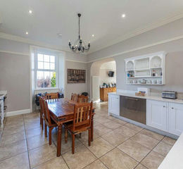 Attractive stone steps at the front of the house lead up to double doors with glazed transom window above that open into an entrance porch where an inner door with glazed side panels leads into the welcoming reception hall. The three principal reception rooms are accessed from the hall, together with the kitchen/breakfast room and downstairs cloakroom/WC. To one side of the hall, glazed double doors open into a spacious dual-aspect drawing room with windows to the front and side fitted with working shutters and a marble fireplace with electric fire. To the other side of the hall there is an everyday sitting room with Bang & Olufsen surround sound, cinema screen and projector, bespoke contemporary cabinets and a contemporary electric fire. The sound system is also linked through to the master bedroom, dressing room and bathroom and is available in the kitchen using alternative speakers. The dining room is positioned to the rear of the house and offers a charming space for formal entertaining and benefits from a fireplace with cast iron insert and decorative tiles. The fabulous kitchen/breakfast room forms the heart of the home and provides a generous working kitchen area, ample space for a table and chairs for everyday dining together with informal seating if required. This area is currently used as a study area. The kitchen is fitted with a range of cream painted units with wood work surfaces, Belfast sink, four-oven AIMS AGA, integrated dishwasher and two drawer fridge. Off the kitchen, a rear hall gives access to various ancillary rooms including a laundry room and a boot/utility room with boiler room off and a door to the rear.