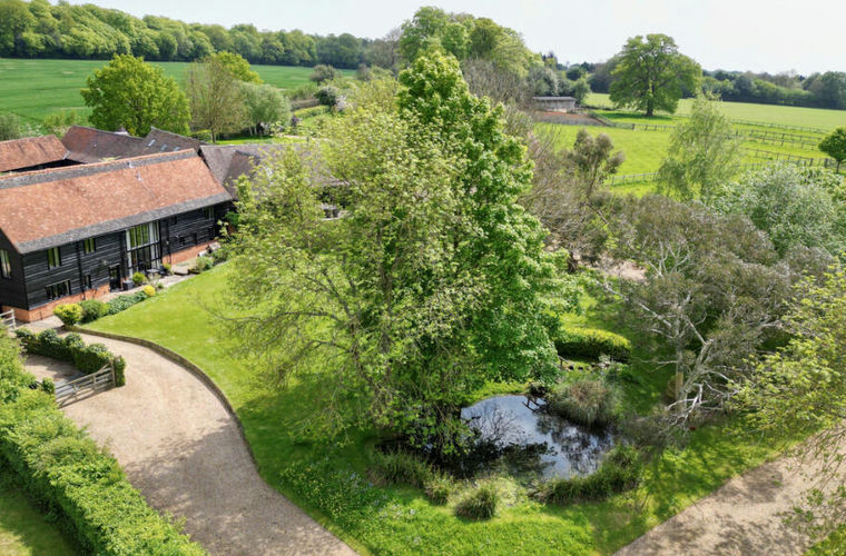 Honor Lodge is a stunning 16th century barn conversion nestled within four and a half acres of picturesque Chiltern countryside yet only a mile from the local village. The property retains its original timber beams, offering a glimpse into its agricultural past while embracing a new life as a charming countryside retreat. Prime features include an expansive living room with vaulted ceilings, an impressive principal bedroom suite, large windows that bathe the interior in natural light and four and half acres of grounds including courtyard and formal gardens as well as paddocks and associated equestrian facilities.