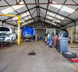The workshop is rectangular in shape, containing three vehicle ramps and fixed road rollers to the floor. The side and front extensions contain a reception office, customer waiting area, two toilet facilities and a store.