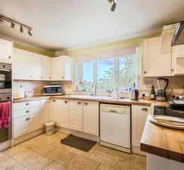 Tiled flooring, double glazed UPVC windows the rear aspect, range of wall base units with wooden work surface over bowl and a half sink, tiled splashback, built in oven, grill and hob with electric extract fan overhead, coving to ceiling.