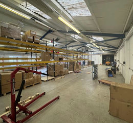 Internally there is solid concrete flooring, double glazed UPVC windows to the side elevation, internal clearance to eaves of 3.42m, 3-phase power supply, heating currently provided by Cartivel gas fired blower heater to the warehouse and a roller shutter loading door.