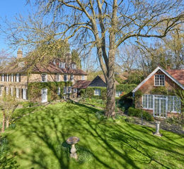 The south facing gardens and grounds are a particular feature, extending to about 1.39 acres with many mature deciduous trees, wide lawns and large flower and shrub borders. There is a wide paved terrace and a loggia. The garden is enclosed with fenced and hedged boundaries. There is an indoor swimming pool with a shower and adjacent w.c. Spacious well-built garden room currently used as painting studio. Garden store and separate machinery store. Gate leading to the rear right of way. There is a parking area for several cars and an adjacent bike store.