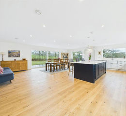 At the heart of the home is a striking open-plan kitchen, family and dining room. Flooded with natural light and opening directly onto the gardens, this space has been designed for both everyday family life and entertaining, creating a true hub of the home. The layout encourages connection between inside and outside, making full use of the setting and views.